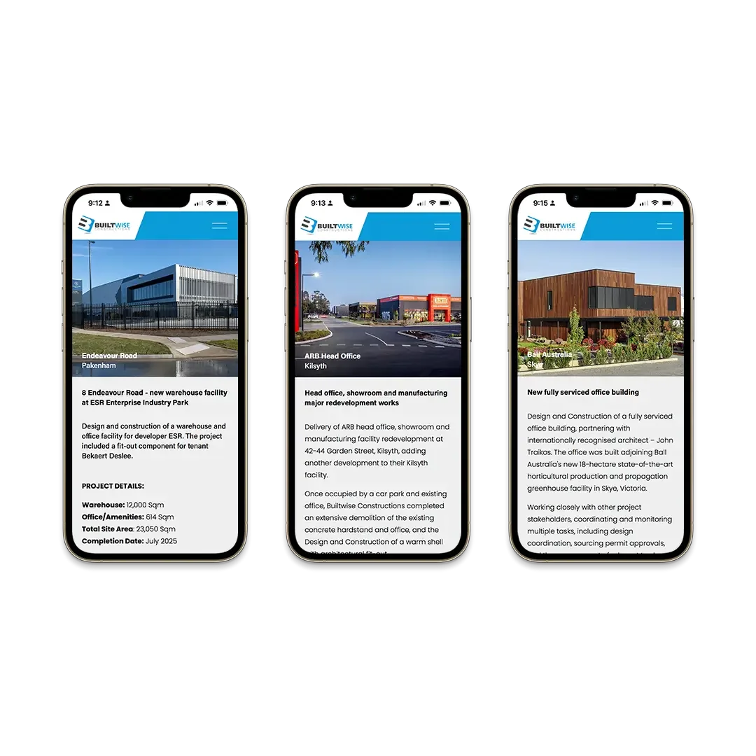 Builtwise now has a cohesive brand identity and digital presence that reflects its capabilities and credibility. With a clear, consistent visual style and a professional project showcase, they’re better positioned to engage with major property developers and stand out in a competitive market.