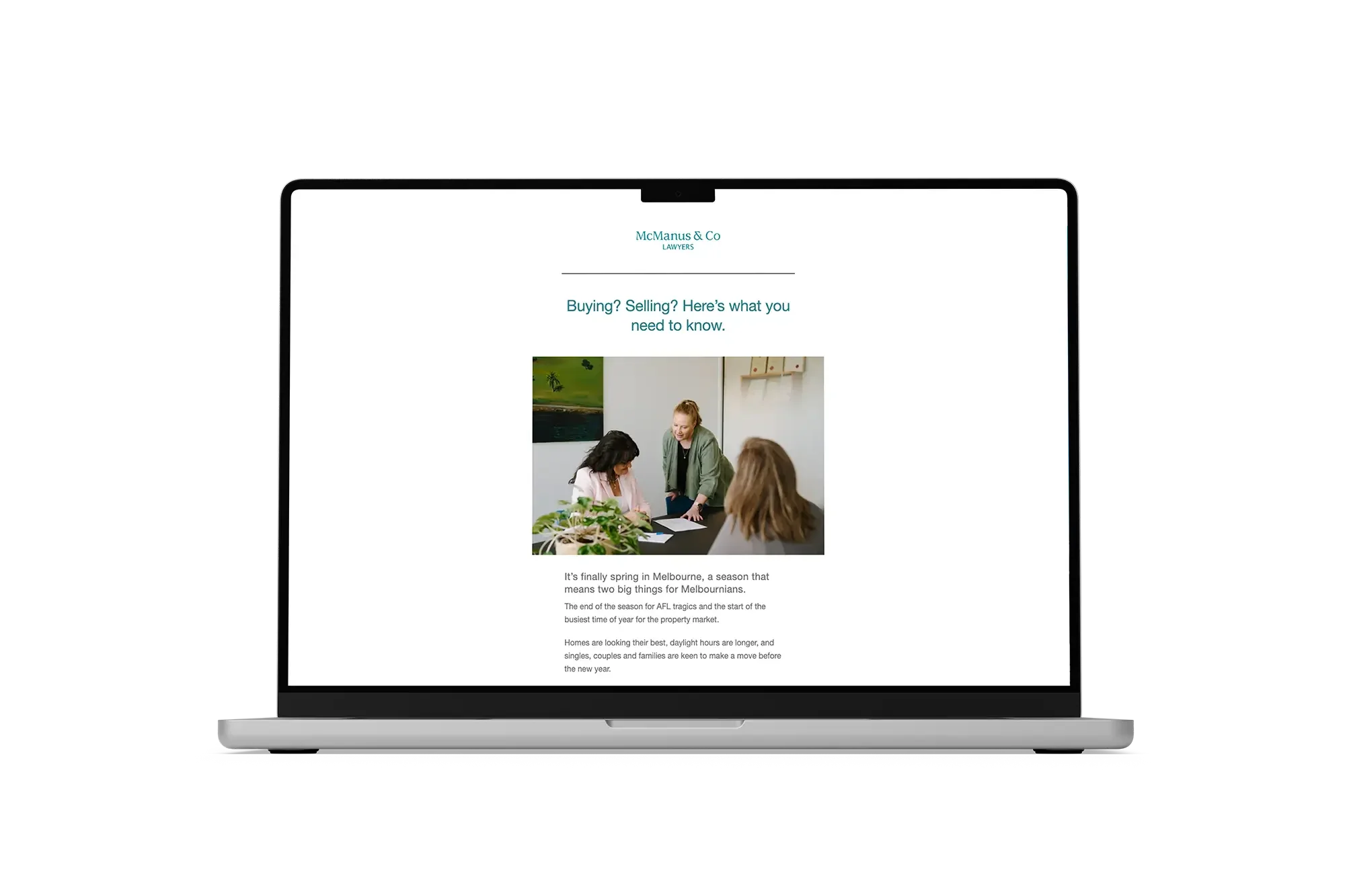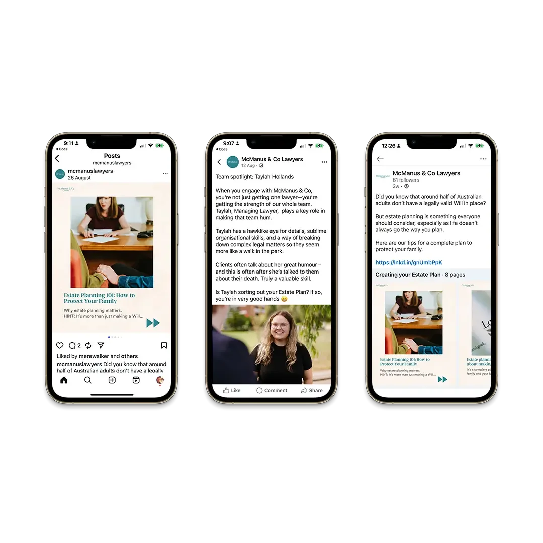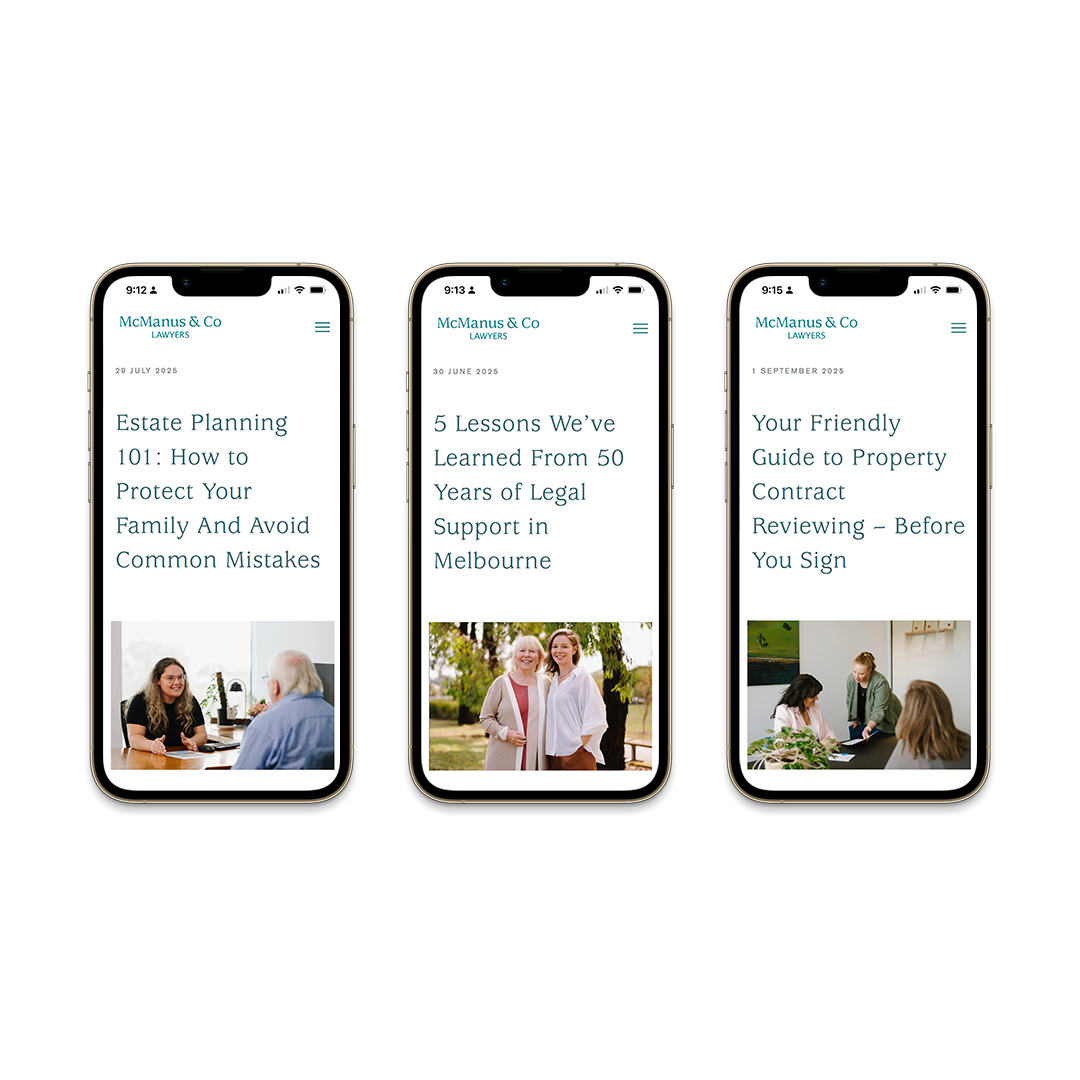 McManus & Co Lawyers is a local Inner West Melbourne firm specialising in conveyancing and Wills & Estates. Their audience is time-poor and trust-driven; the brand voice is clear, friendly and practical. Our role is to create steady, client-focused content that builds trust, strengthens local visibility, and keeps the brand front of mind.